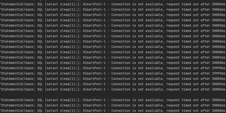 하지만, 가상스레드를 사용함으로 인해, HTTP 요청을 어마어마하게 받다보니, DB커넥션을 풀에서 받으려 기다리다 기다리다..
